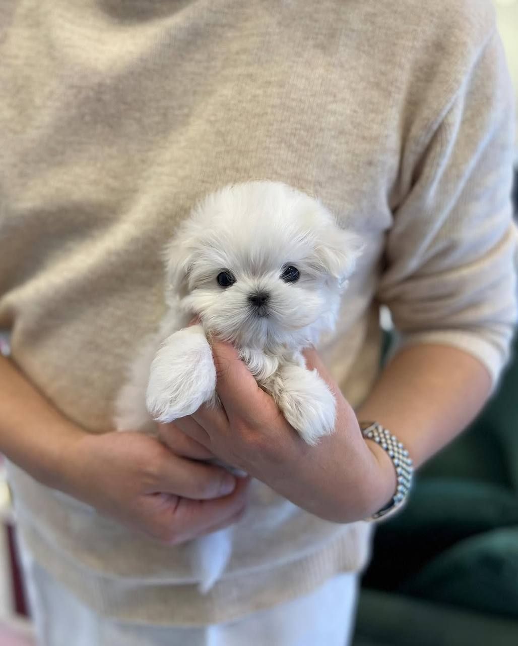 Meet Hope 🐾 – this adorable teacup male Maltese puppy, a perfect blend of elegance, affection, and playful charm. With his pure white, silky coat, tiny size, and bright, expressive eyes, Hope has a truly angelic look that captures hearts instantly.